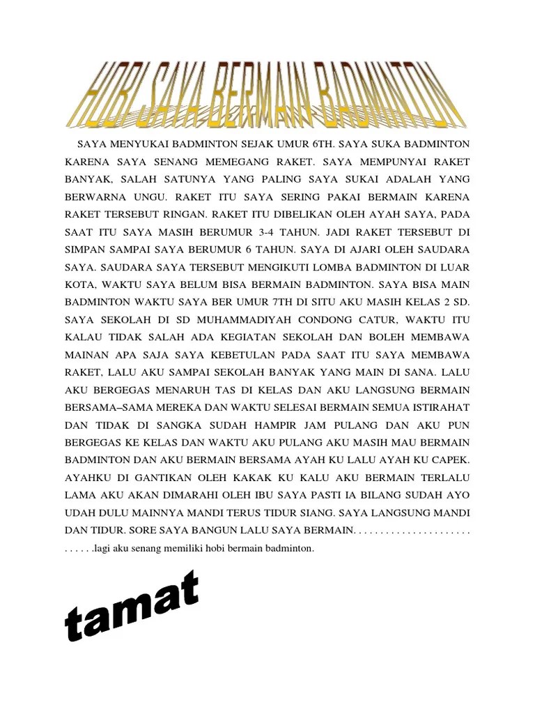 Contoh Karangan Hobi Saya Bermain Badminton - Karangan Hobi Saya Pdf